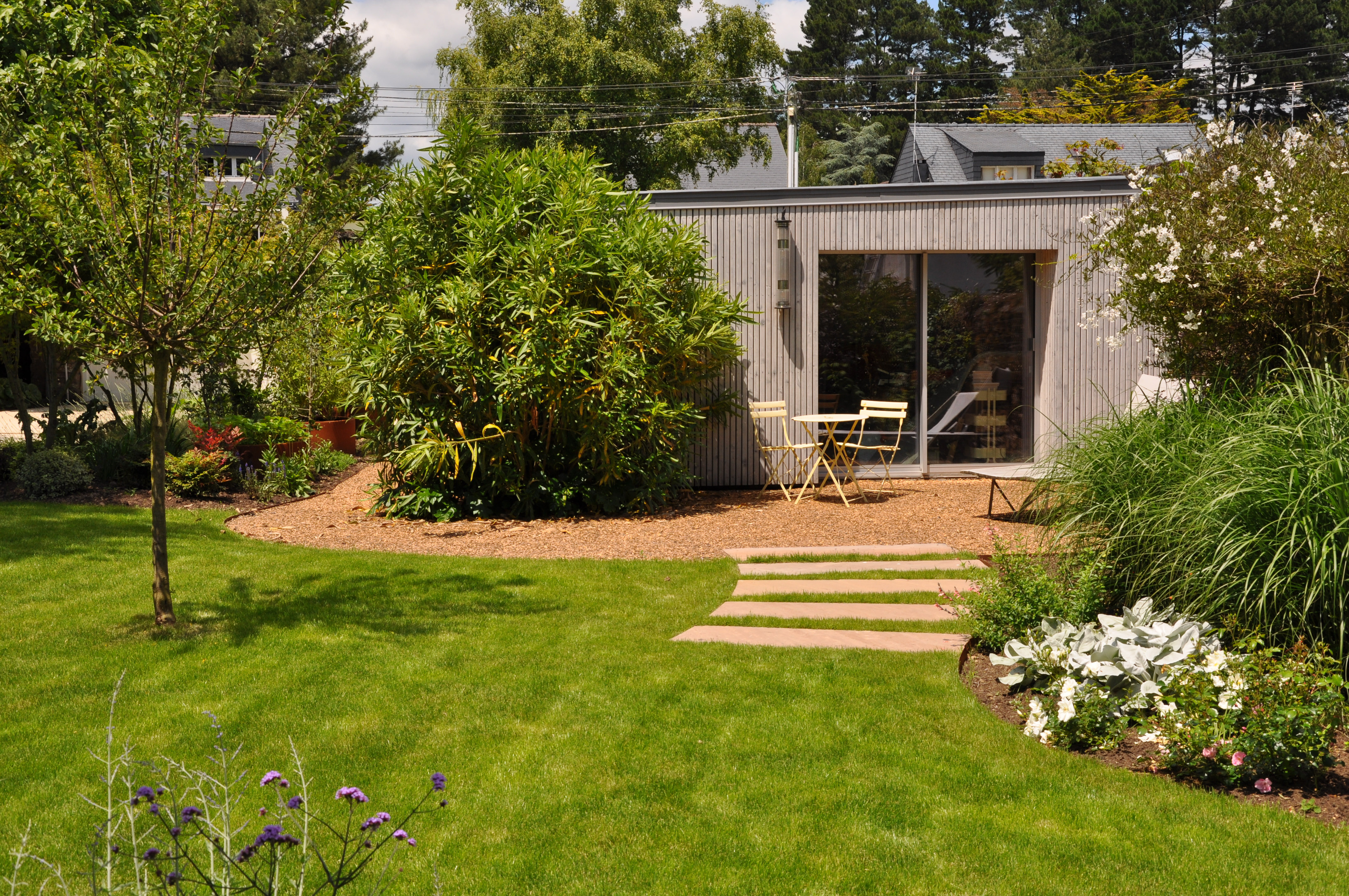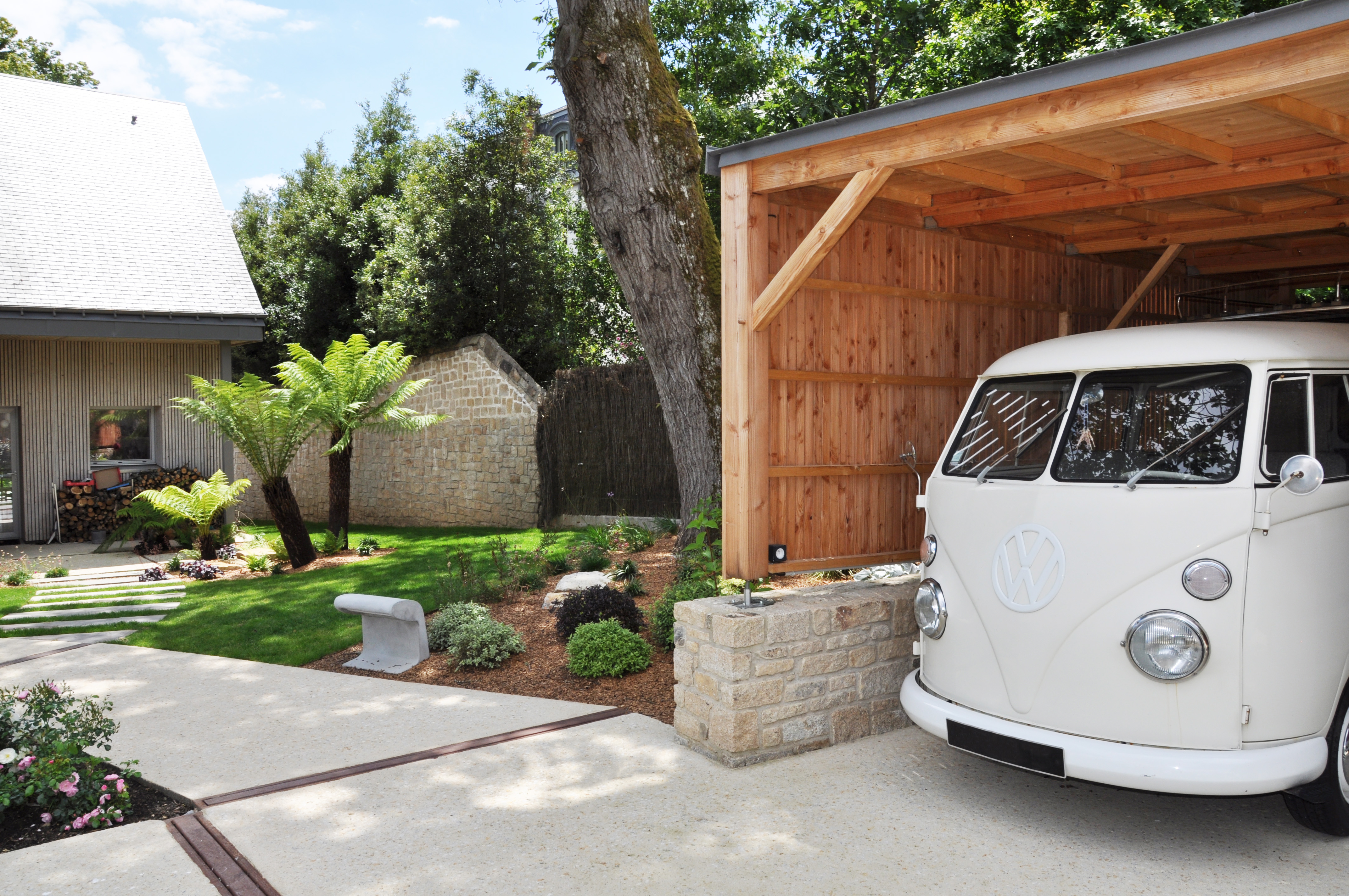 • Attentes du client : Transformer l'espace uniquement dédié aux voitures en un jardin naturel où l'on peut déambuler au gré des saisons avec le plaisir d'y récolter fruits et légumes.